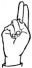 На ћирилици написано АЛЕН МЕДОЈЕВИЋ састоји се из 13 слова [?]. Исписано ћириличном једноручном азбуком за глувонеме:
